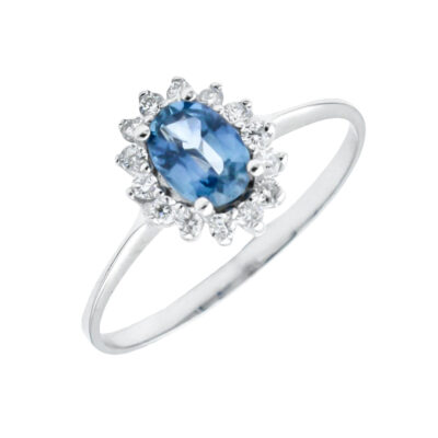 Anillo Rosetón Diamantes 0,14ct Zafiro Oro Blanco 18K