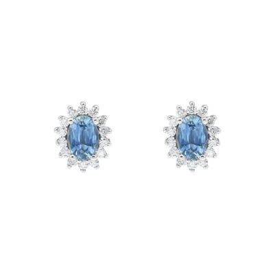 Pendientes Rosetón Diamantes 0,28ct Zafiro Oro Blanco 18K
