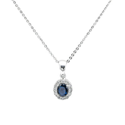 Collar Rosetón Diamantes 0,08ct Zafiro Oro Blanco 18K