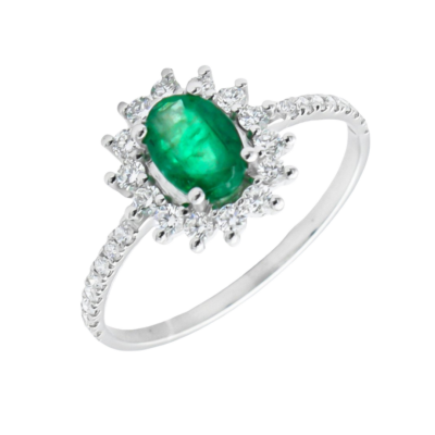Anillo Eryndra Diamantes 0,85ct Esmeralda Oro Blanco 18K