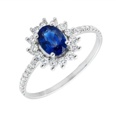 Anillo Rosetón Acompañado Diamantes 0,46ct Zafiro Oro Blanco 18K