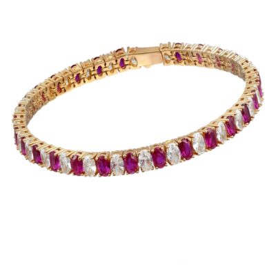 Pulsera Riviere Red Ovals Plata Dorada