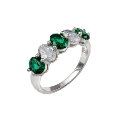 Sortija Green Ovals Plata
