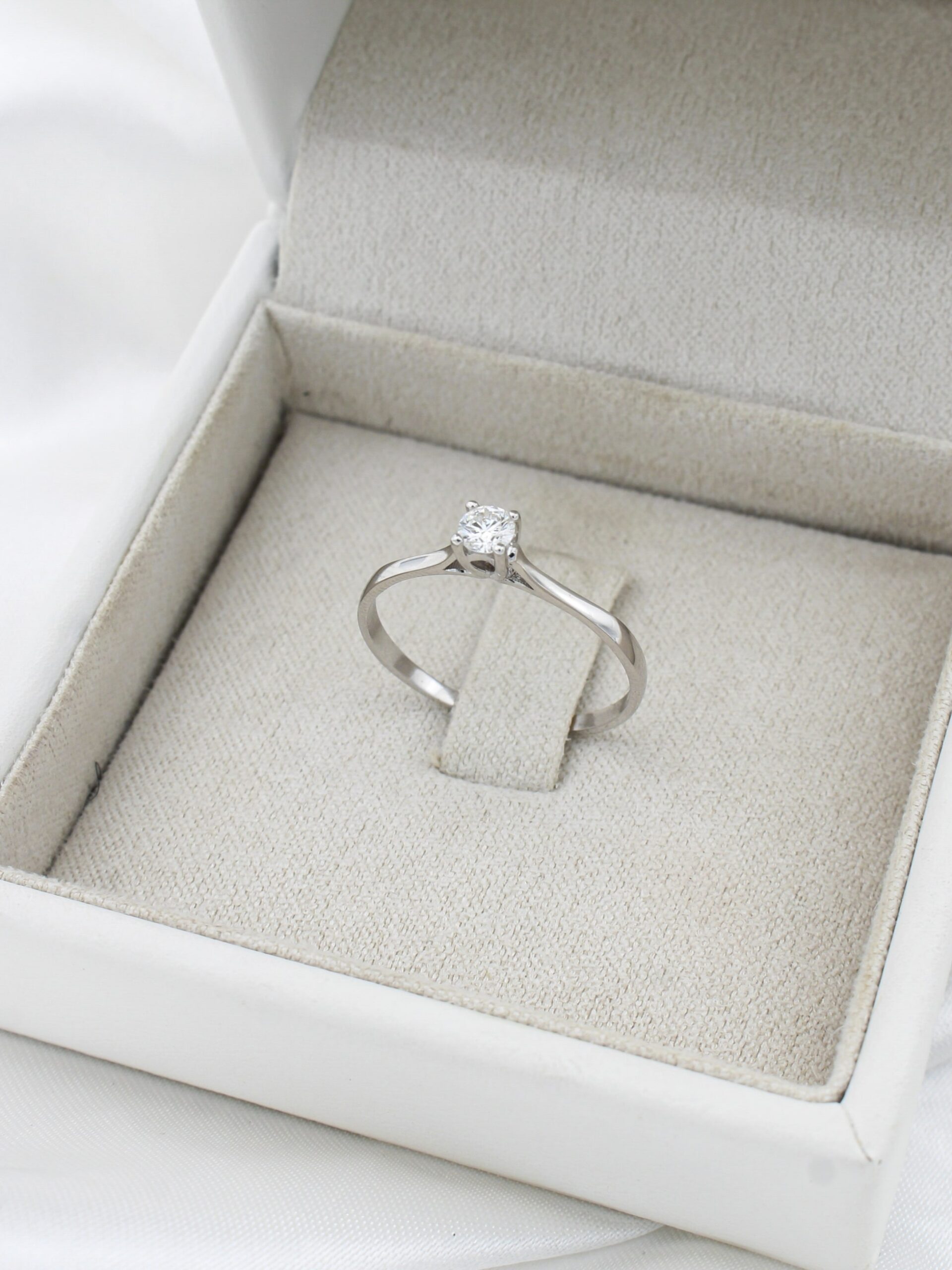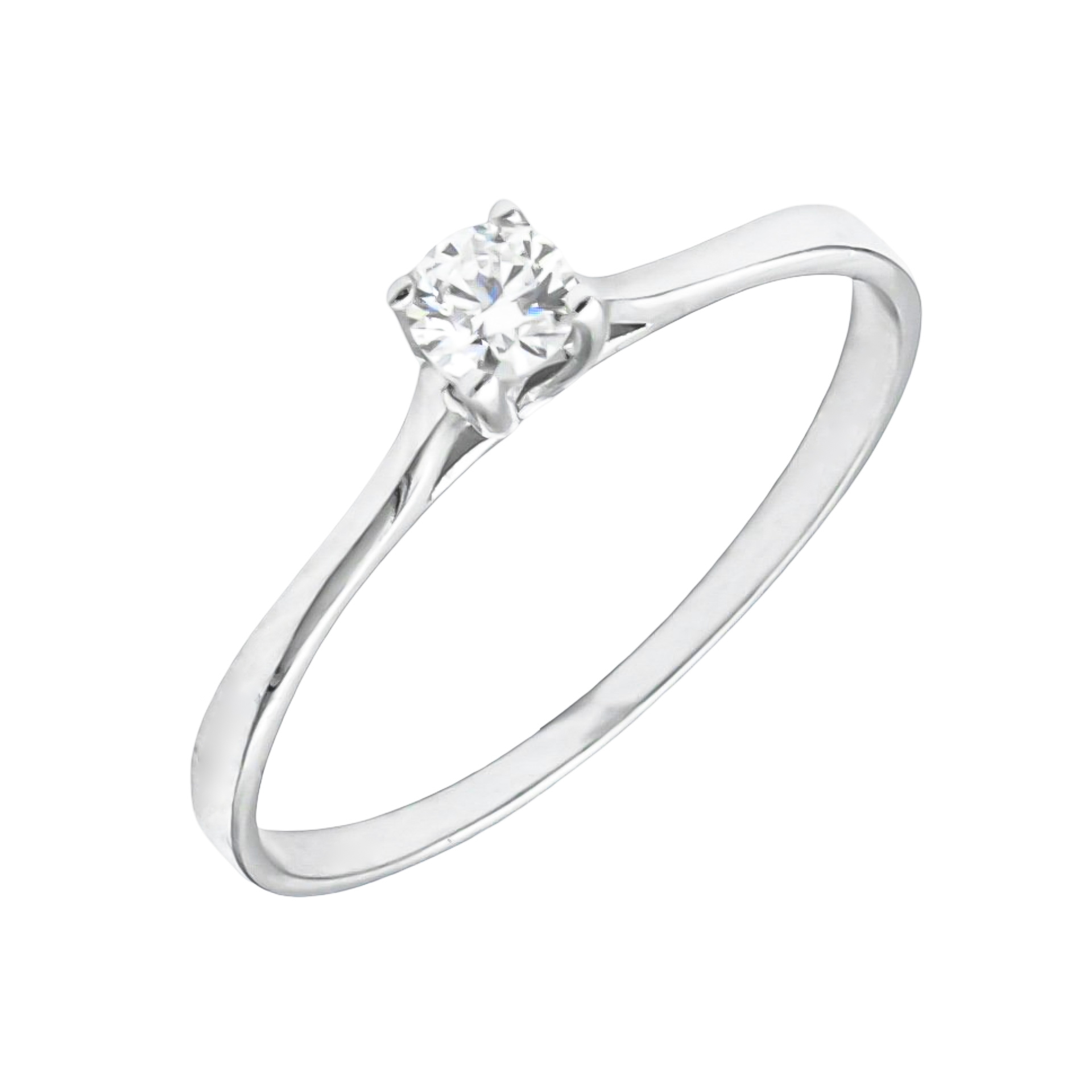 Anillo solitario elaborado en Oro Blanco de Primera Ley 18Kt 750 milésimas con diamante naturale talla brillante de 0,14ct.