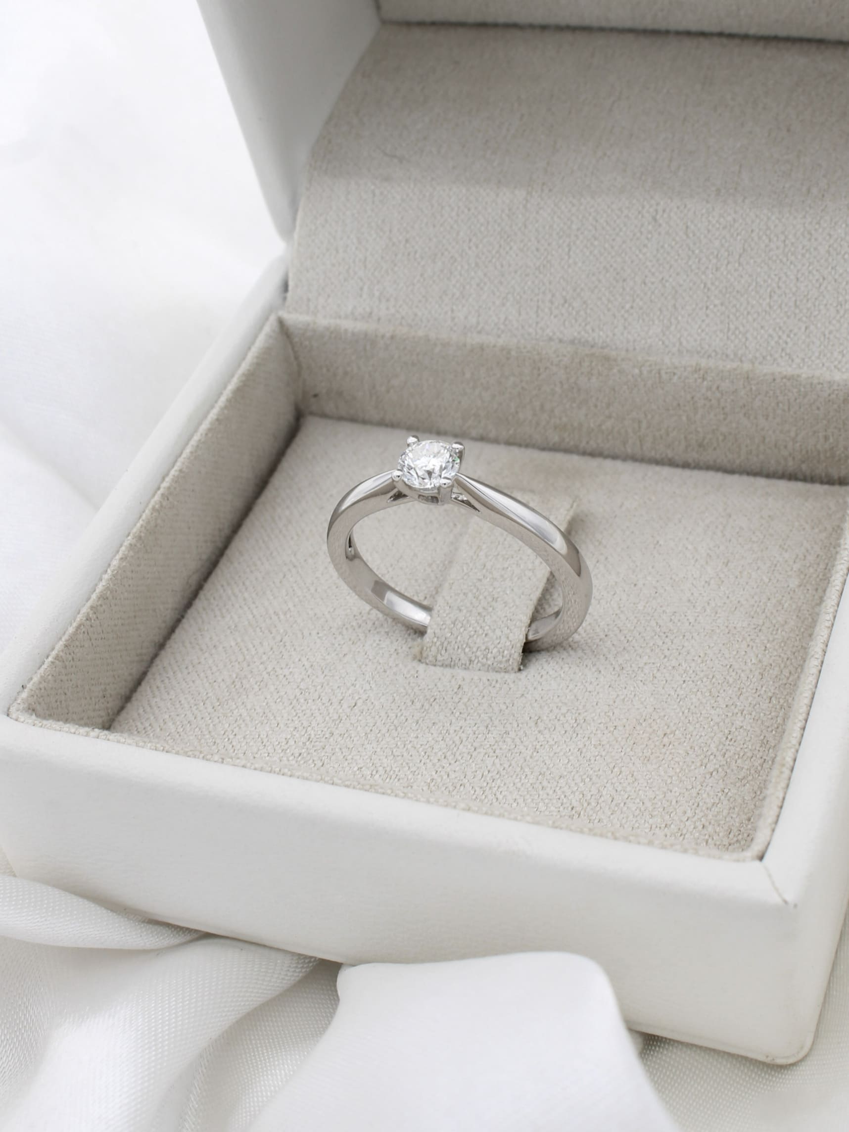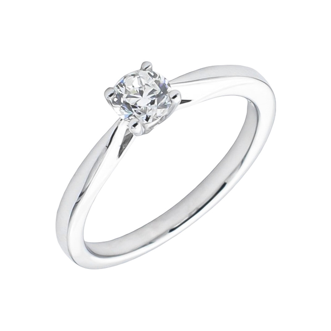 Anillo de compromiso solitario elaborado en Oro Blanco de Primera Ley 18Kt 750 milésimas con 1 diamante talla brillante natural de 0,30ct