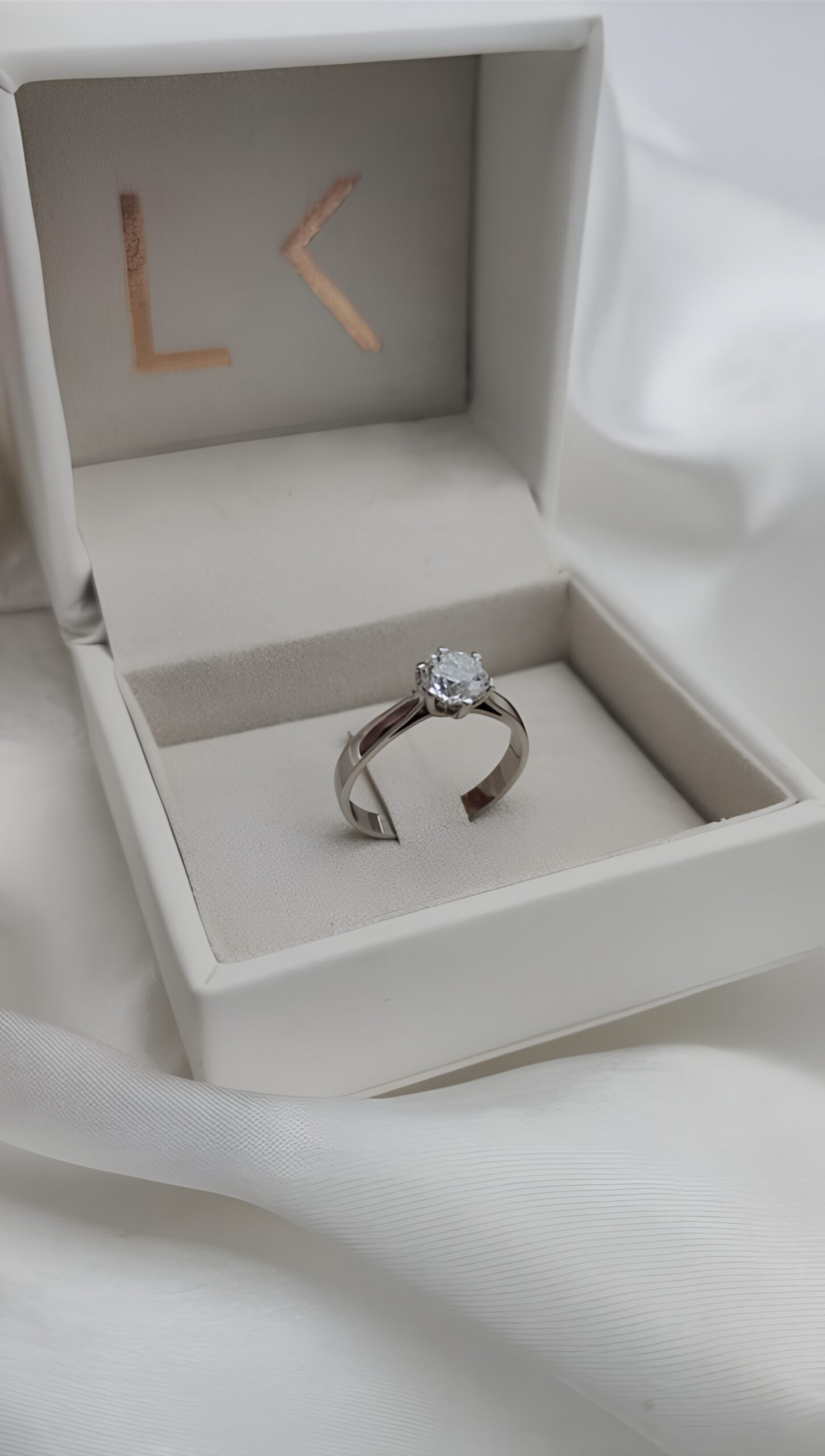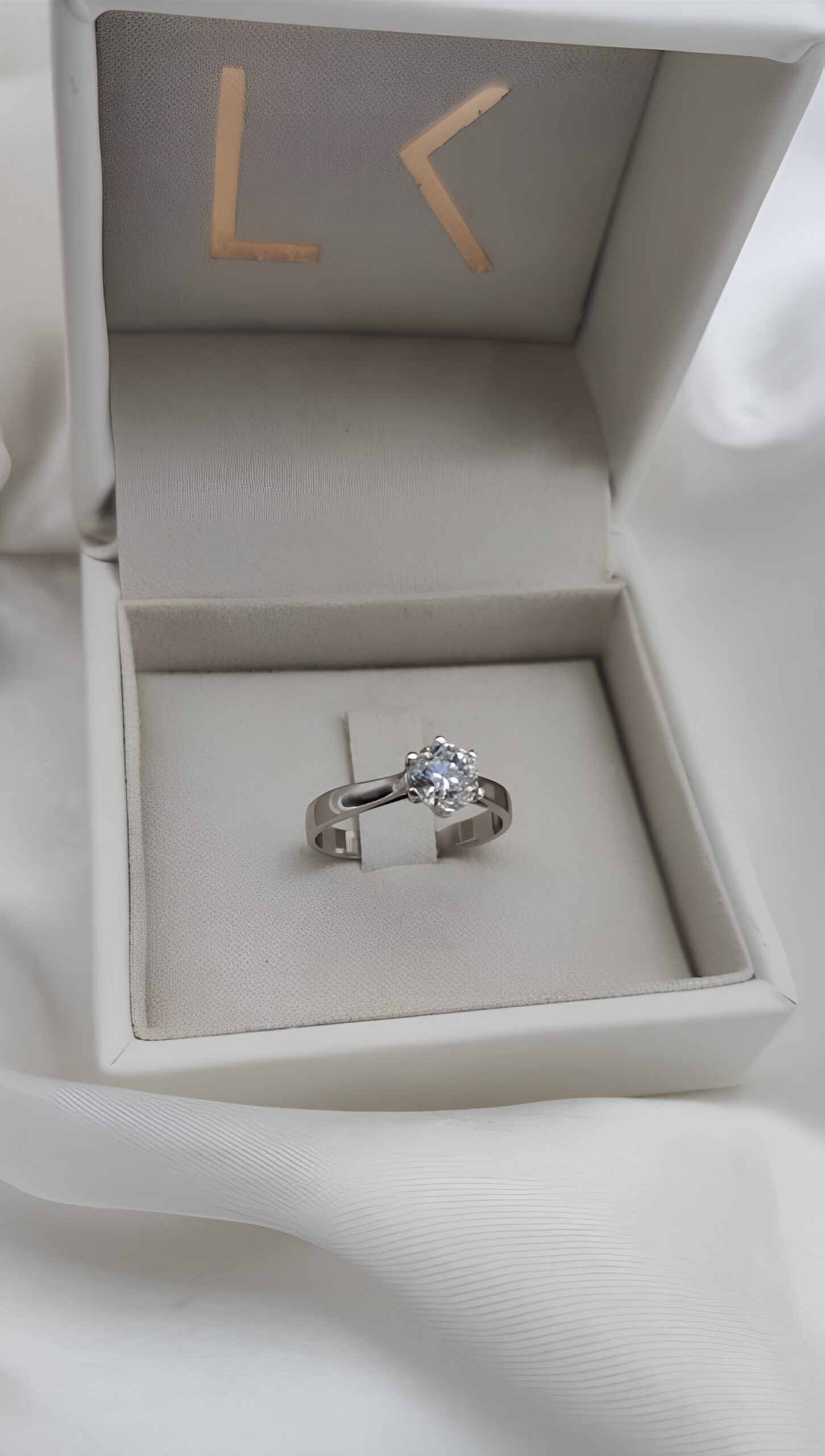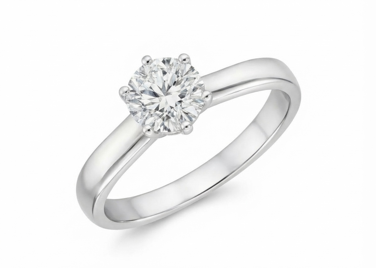 Anillo de compromiso solitario macizo elaborado a mano en Oro Blanco de Primera Ley 18Kt 750 milésimas con diamante natural talla brillante de 1,00ct.