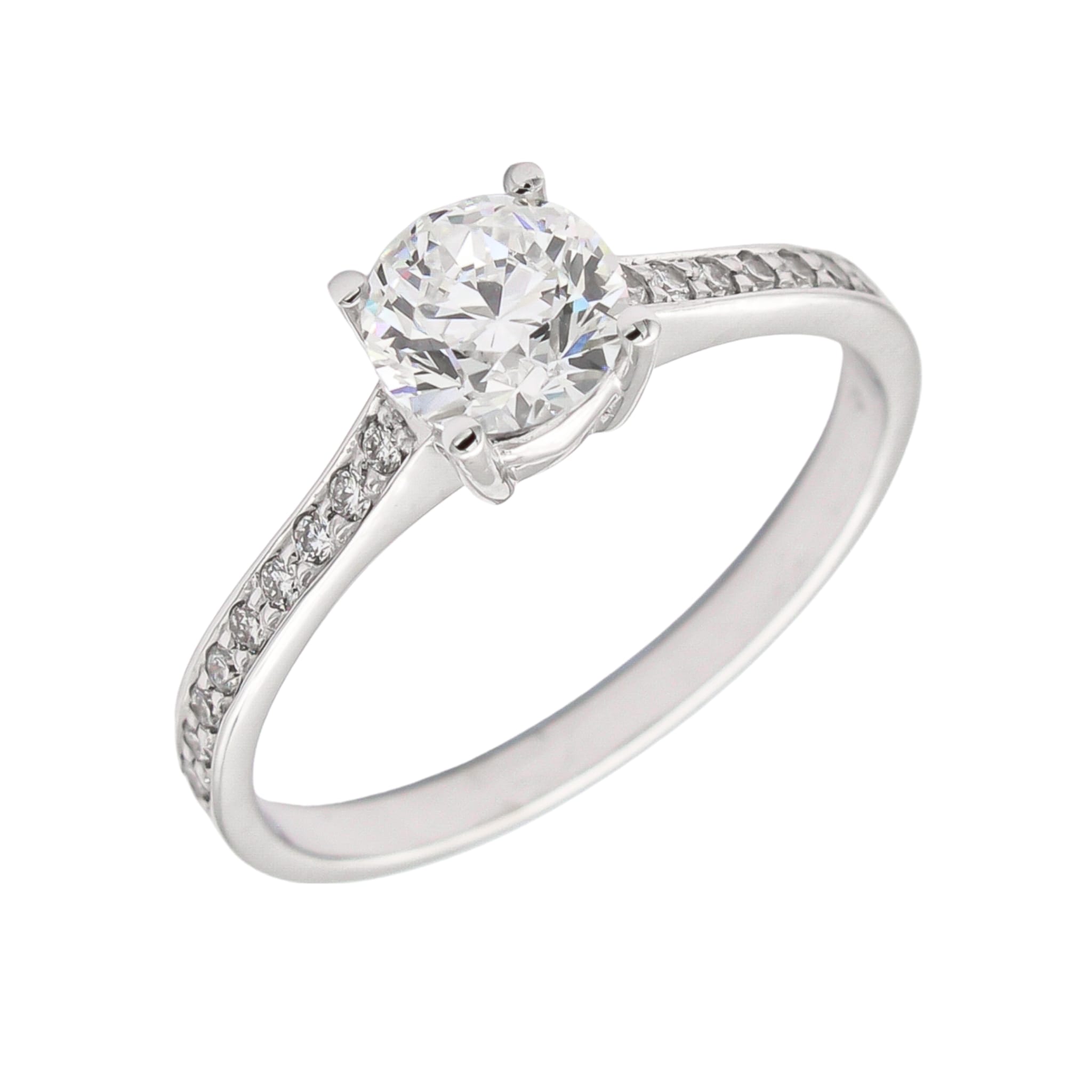 Anillo de compromiso elaborado a mano en Oro Blanco de Primera Ley 18Kt 750 milésimas con diamantes naturales talla brillante haciendo un total de 0,90ct.