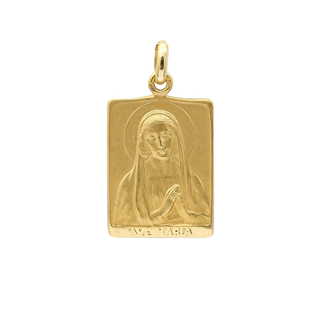 Medalla Virgen María maciza elaborada en Oro Primera Ley 18Kt 750 milésimas