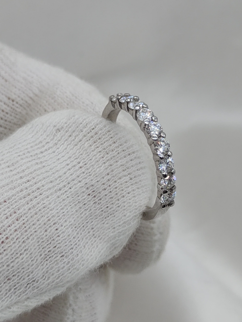 Anillo media alianza elaborado en Oro Blanco de Primera Ley 18Kt 750 milésimas con 9 diamantes naturales talla brillante haciendo un total de 0,55ct.