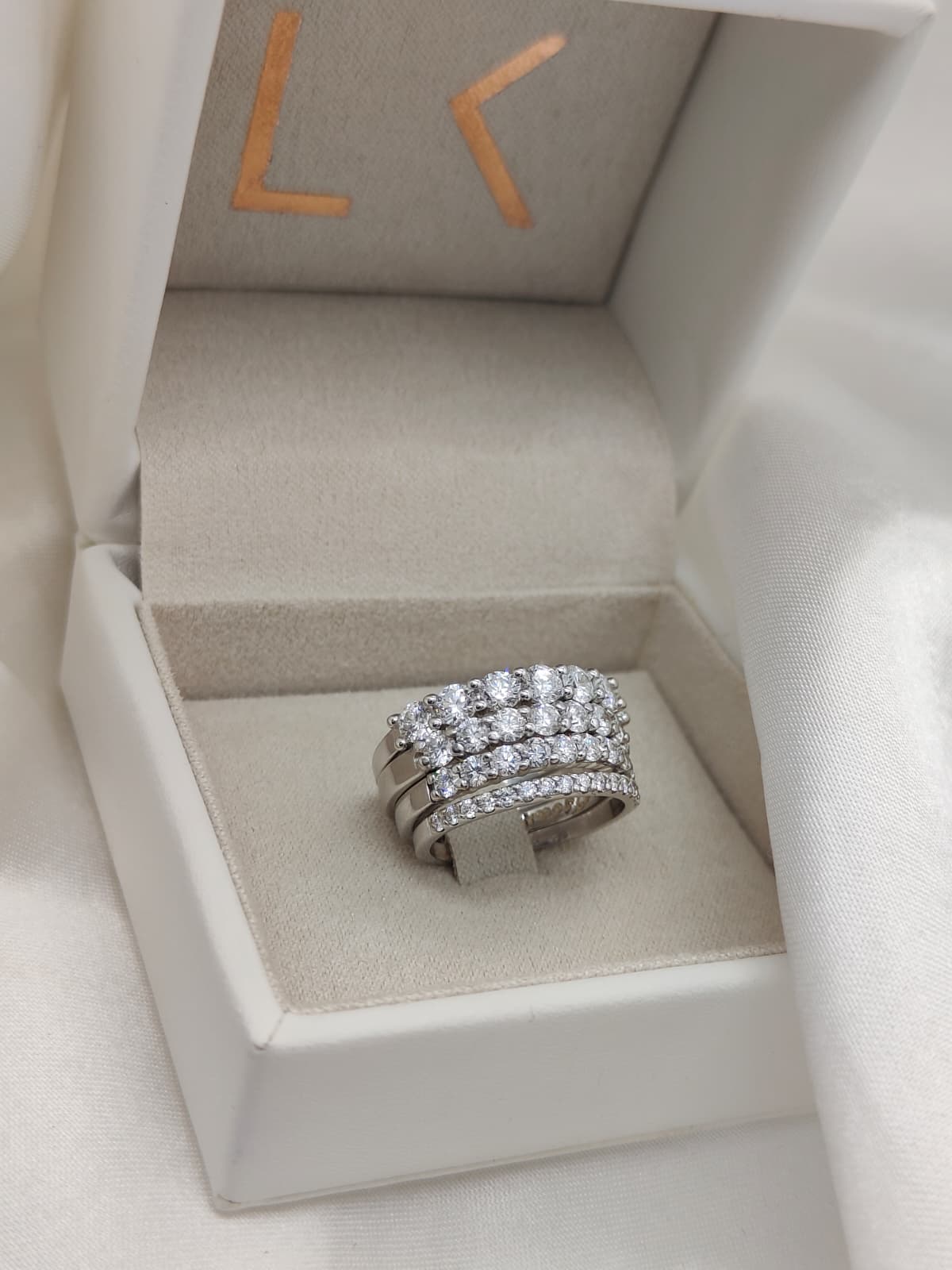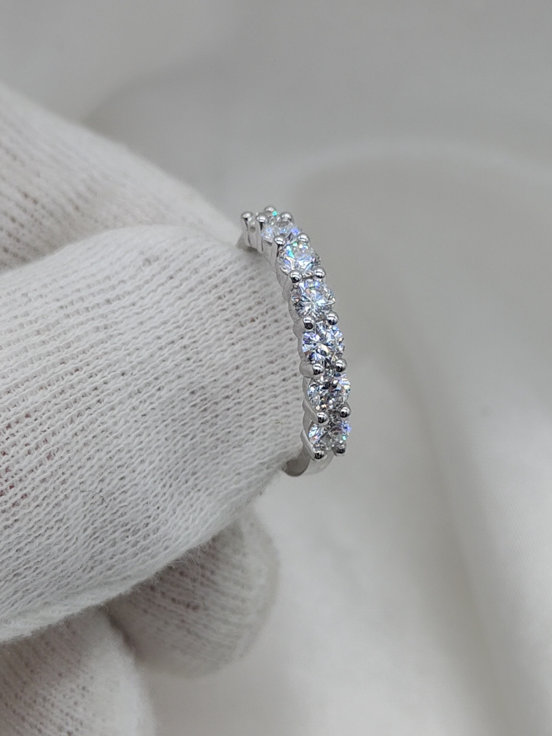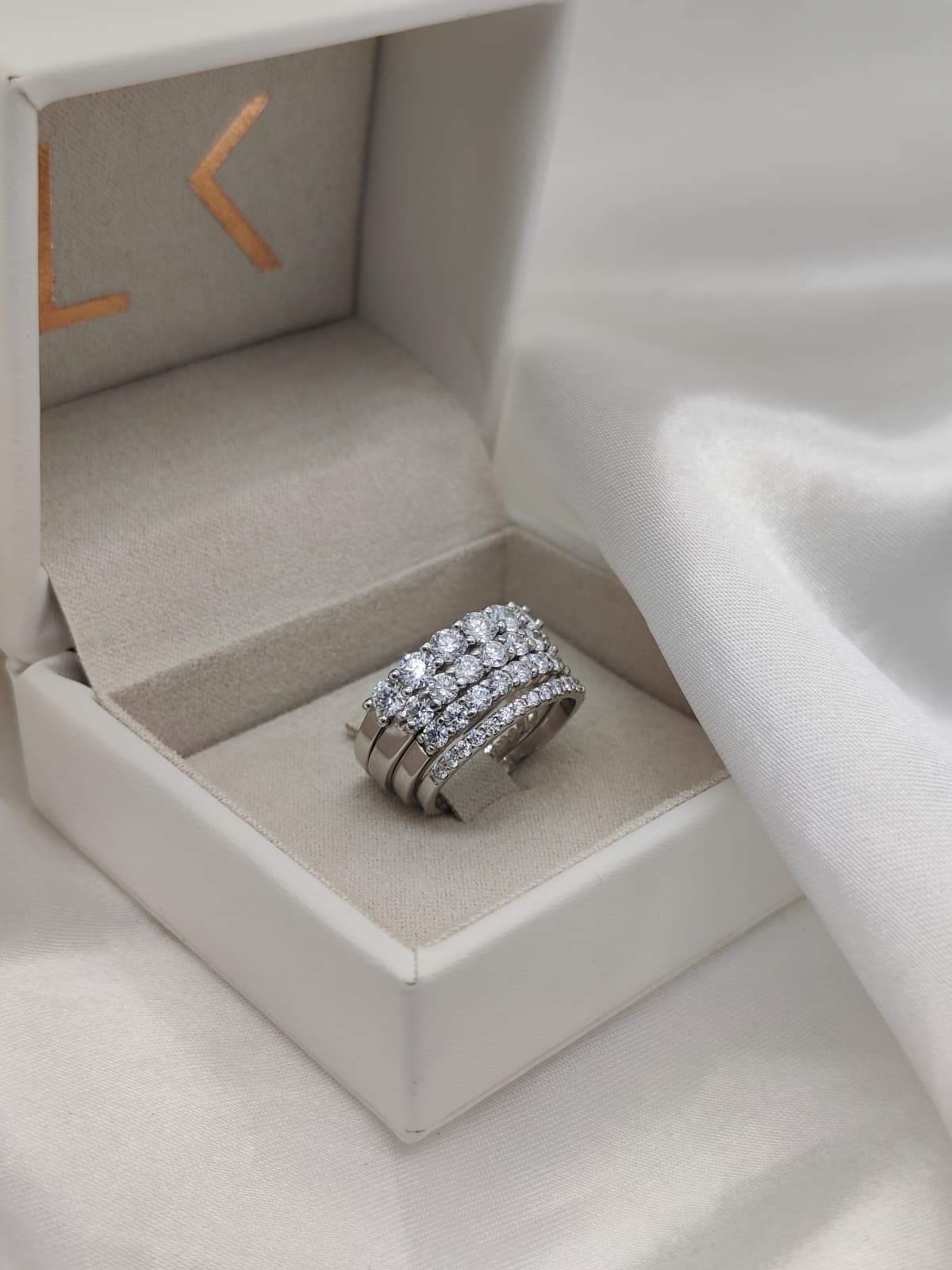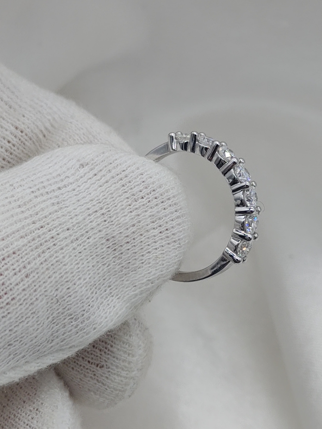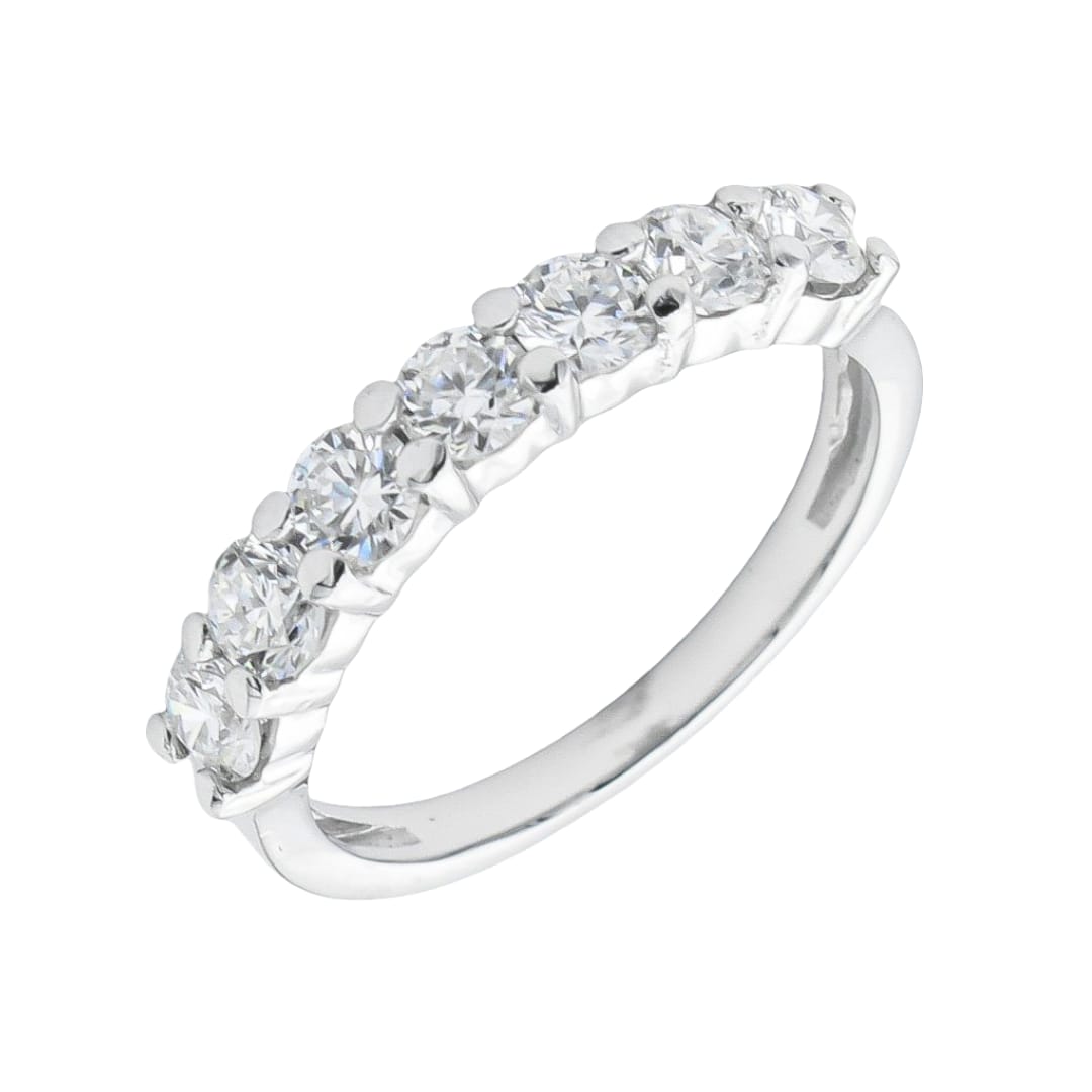 Anillo de compromiso media alianza maciza elaborada mano en Oro Blanco de Primera Ley 18Kt 750 milésimas con diamantes naturales talla brillante haciendo un total de 0,80ct.
