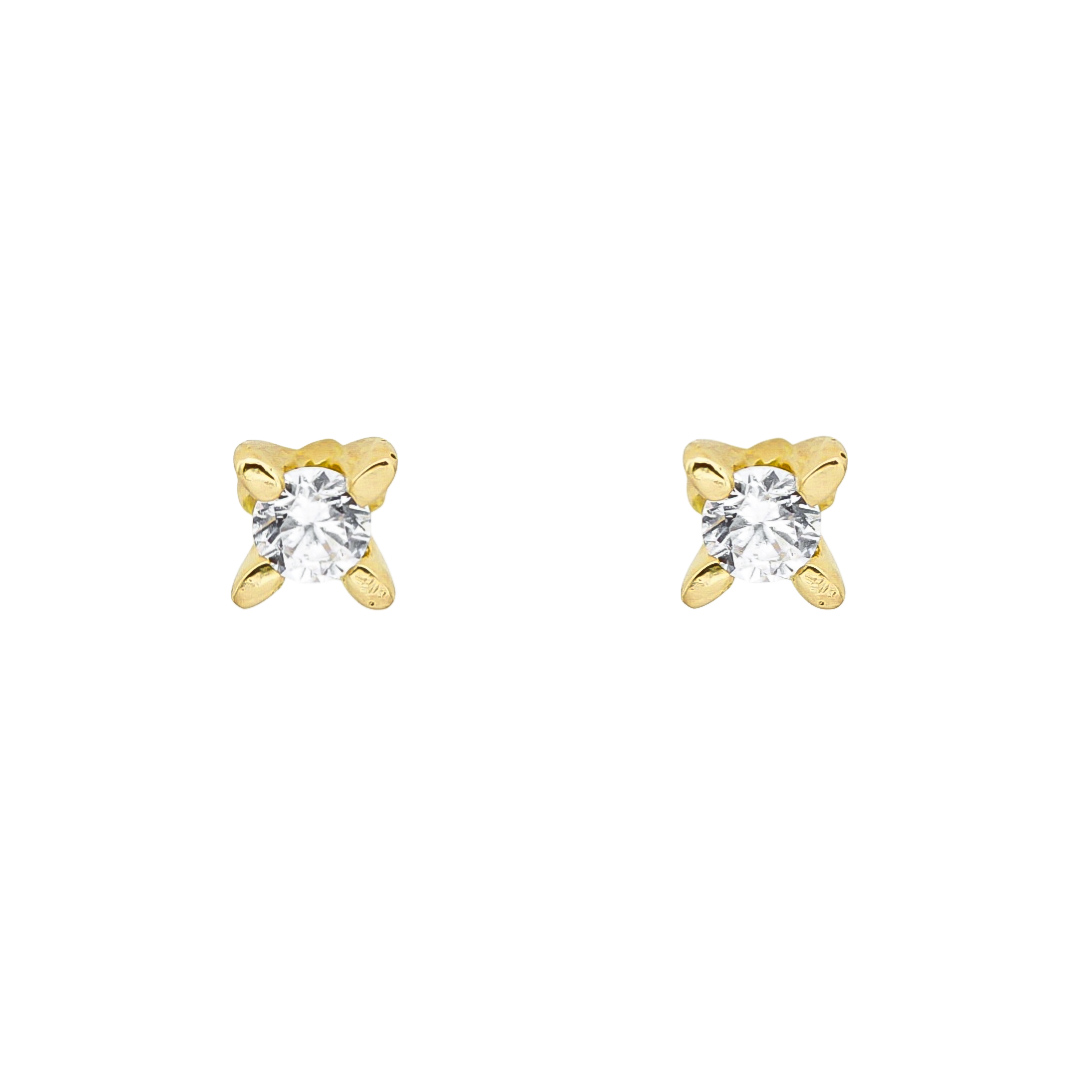 Pendientes personalizados elaborados en Oro Amarillo de Primera Ley 18Kt 750 milésimas con 2 diamantes talla brillante naturales de 0,11ct cada uno, haciendo un total de 0,22ct engastados en diseño cuatro garras