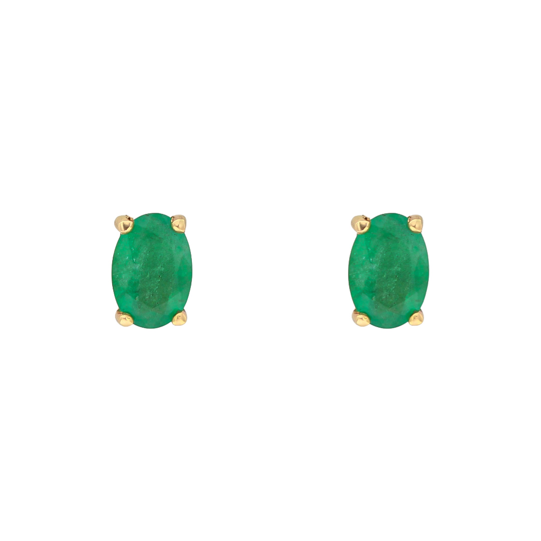 Pendientes Oval Esmeralda Oro Amarillo 18K