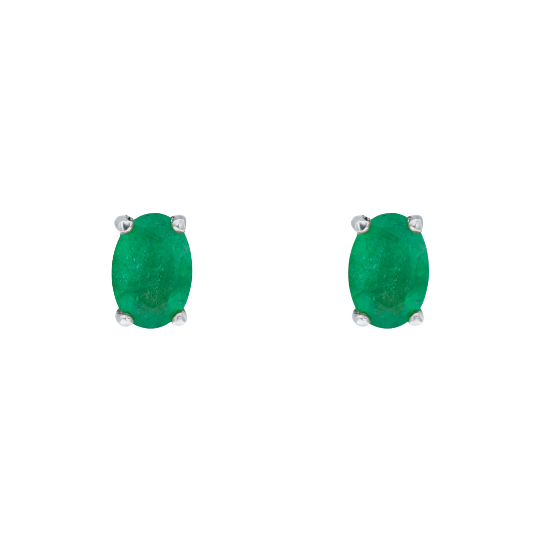 Pendientes Oval Esmeralda Oro Blanco 18K