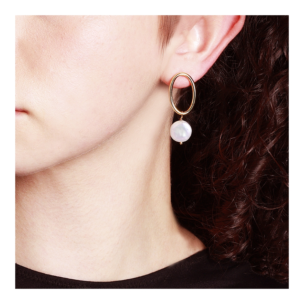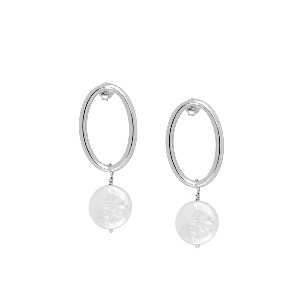 Pendientes Oval Pearl Plata